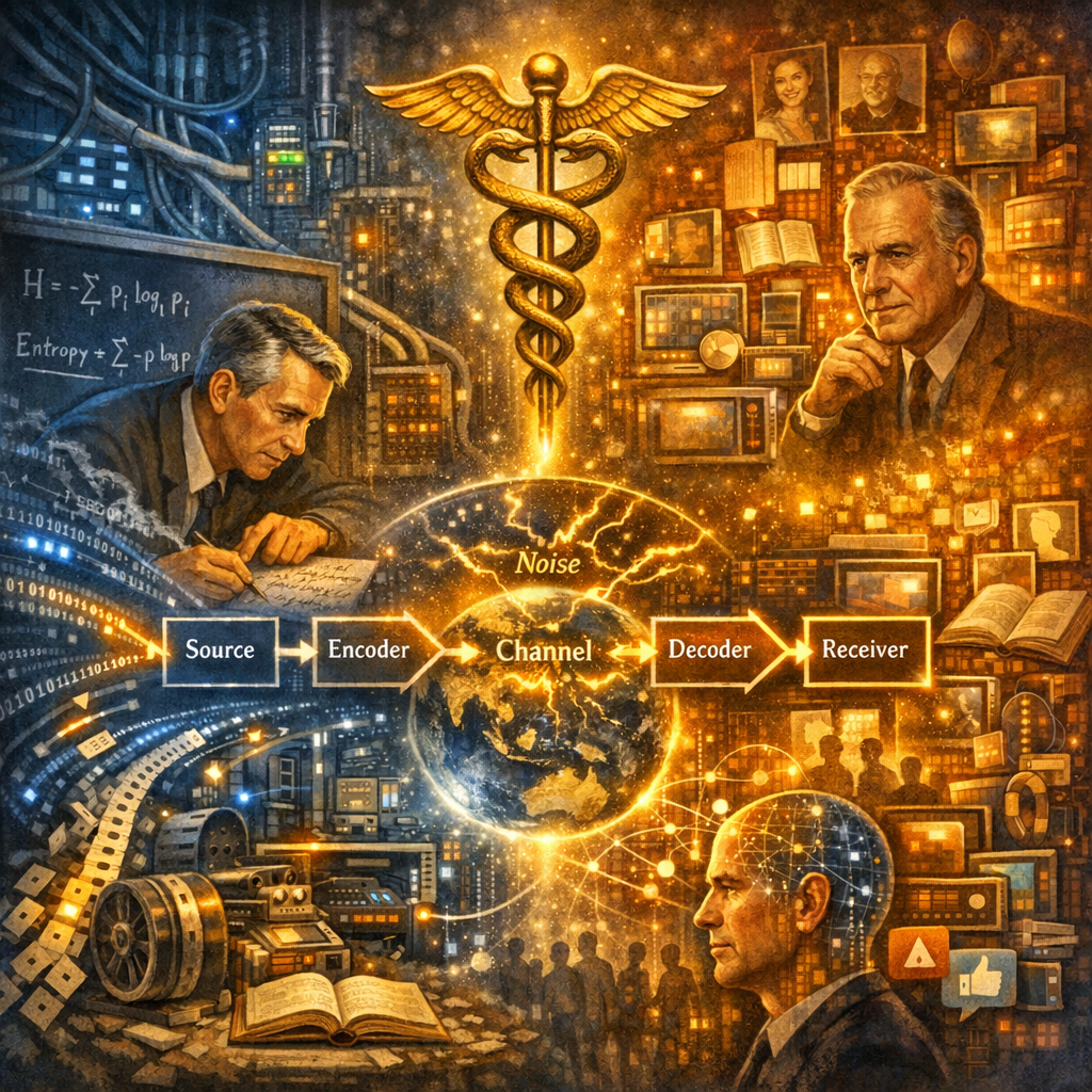 Claude Shannon publie, en 1948, « A Mathematical Theory of Communication » (Une théorie mathématique de la communication). Ce cadre modélise la communication comme un processus technique linéaire et déterministe. Une source génère un message, encodé en signal, transmis via un canal sujet au bruit, puis décodé par le récepteur. L’information se mesure en bits via l’entropie, qui quantifie l’incertitude. Les théorèmes de Shannon optimisent la compression et la transmission fiable malgré les perturbations, fondant ainsi l’ingénierie des télécommunications modernes.
