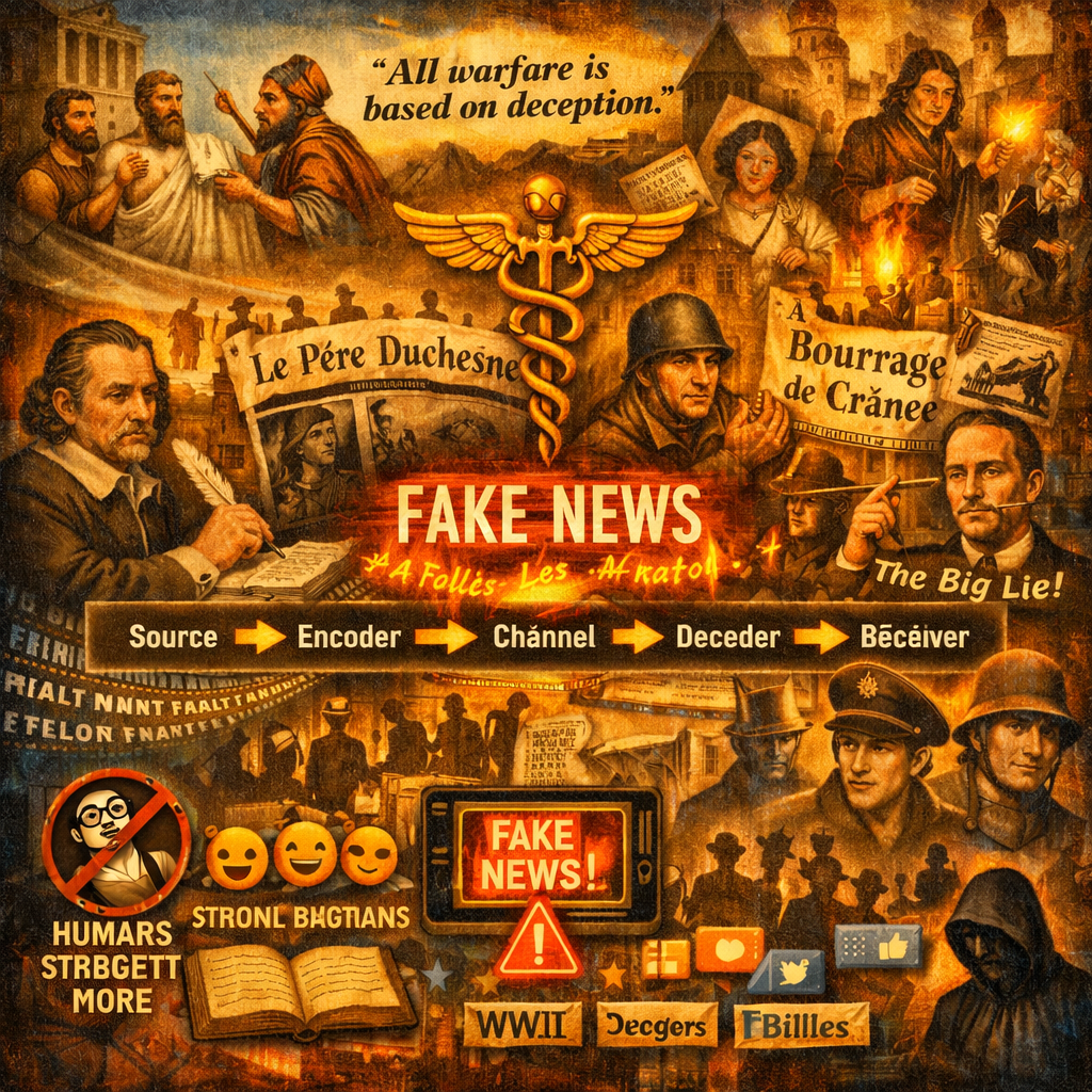 Les fausses nouvelles sont un phénomène récurrent amplifié par les mutations technologiques, mais non créé par elles. Dans l’Antiquité, des rumeurs visaient à déstabiliser les pouvoirs à Athènes, comme les accusations d’impiété contre Socrate. Sun Tzu, dans L’Art de la guerre (VIème siècle B.C.), théorise la désinformation comme une arme stratégique suprême : « Toutes les guerres sont fondées sur le mensonge ». Au Moyen Âge, des accusations imaginaires de violence rituelle servaient à justifier des persécutions antisémites. La propagande s’organise avec l’État moderne : au XVIème siècle, les libelles permettent d’attaquer les puissants sous l’anonymat. Le XVIIème siècle voit les mazarinades ridiculiser le cardinal Mazarin pour galvaniser la révolte de la Fronde.